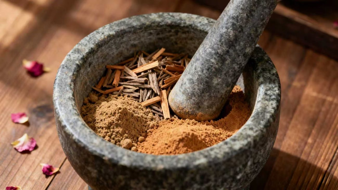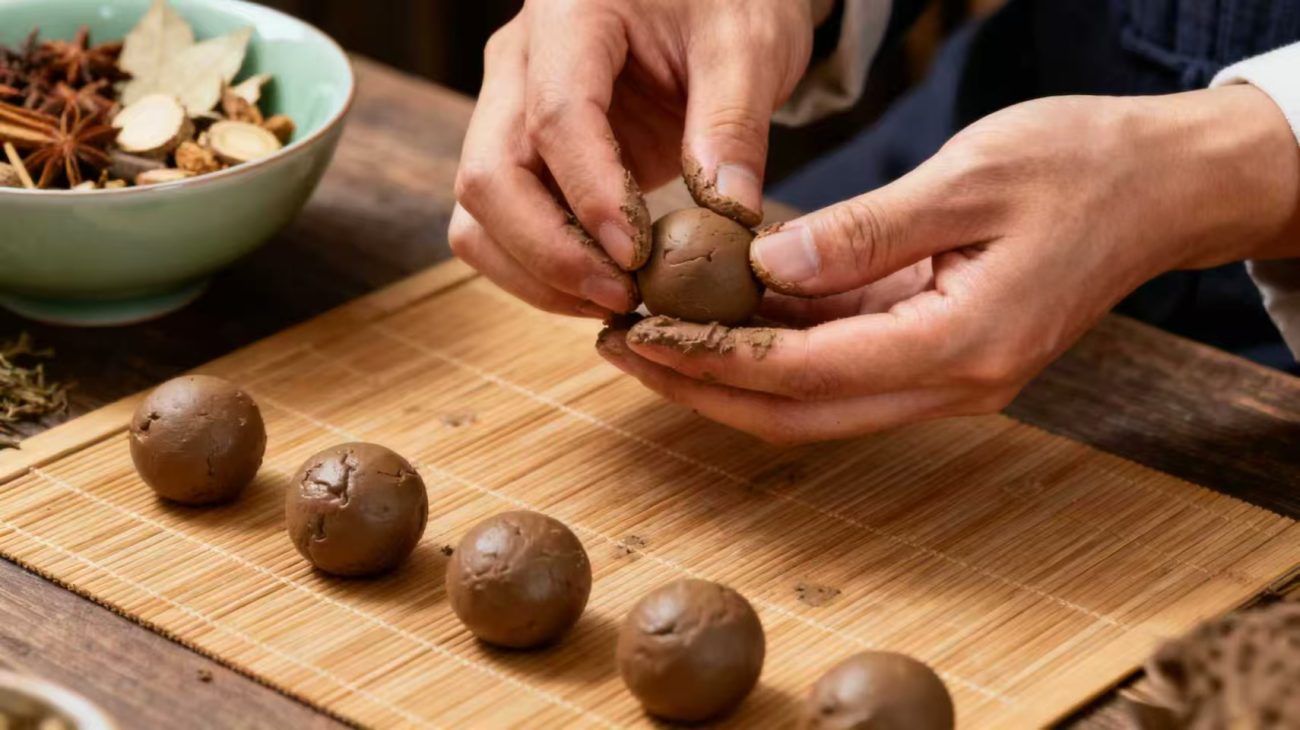 The processed materials are finely ground—often to 120 mesh or finer—before being combined. This is where the artisan applies the principle of “monarch, minister, assistant, envoy,” a traditional system of balancing ingredients according to their strength and role within the formula