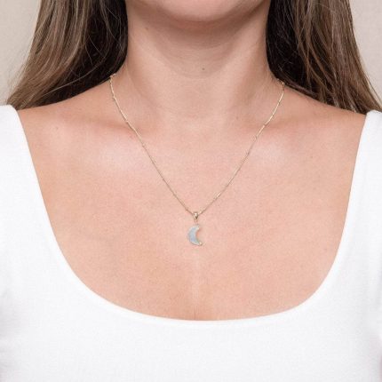 $2,175.00 – $2,571.00Price range: $2,175.00 through $2,571.00Crescent Moon Raw Gemstone Necklace
