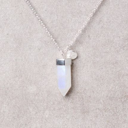 $118.00 – $158.00Price range: $118.00 through $158.00Delicate Rainbow Moonstone Crystal Point Necklace