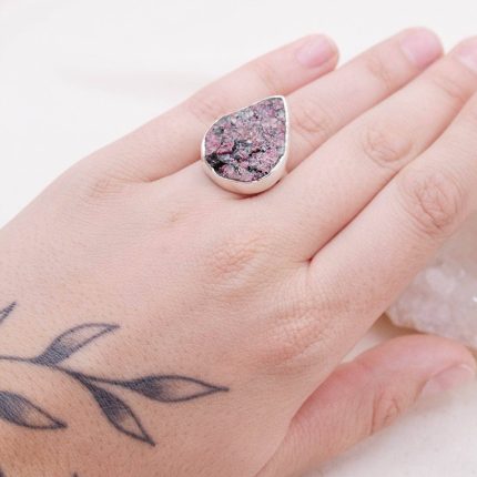 Rare Eudialyte Druzy Adjustable Teardrop Ring