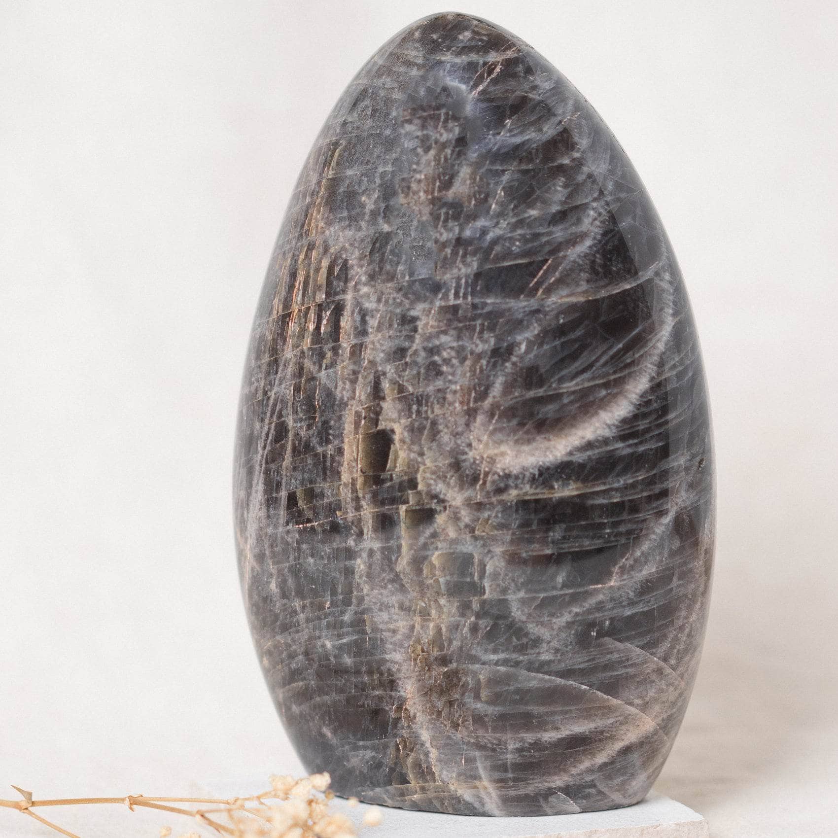 Let the soft strength of the Black Moonstone Freeform support you through emotional cycles, new beginnings, and spiritual awakening. Add this protective moonstone crystal to your collection and experience the sacred power it brings