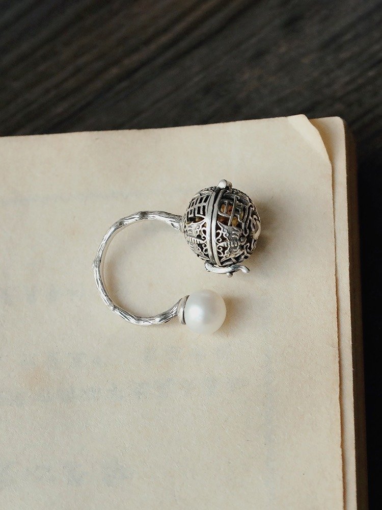 Fragrant Sachet Ring – Sterling Silver Hollow Ball with Herbal Aromatic Core