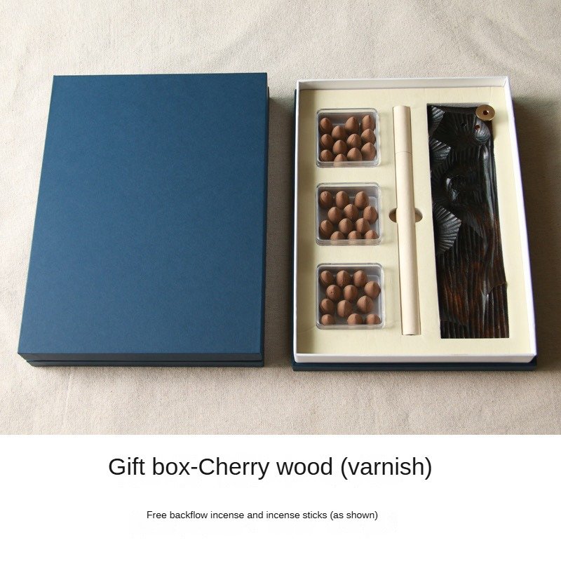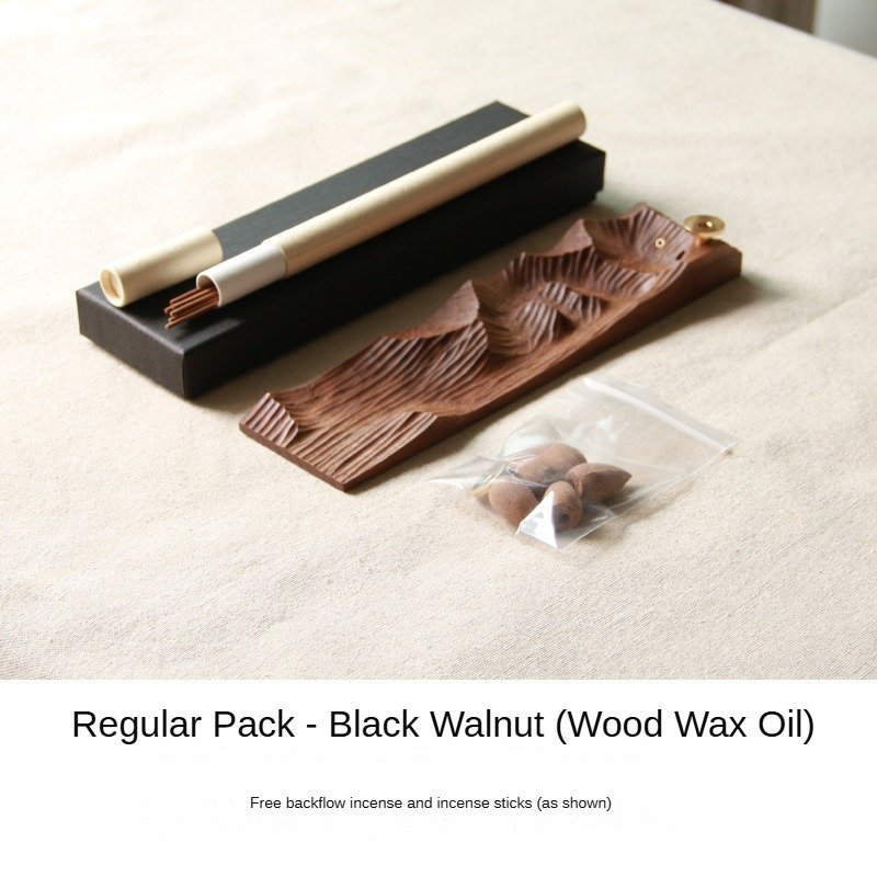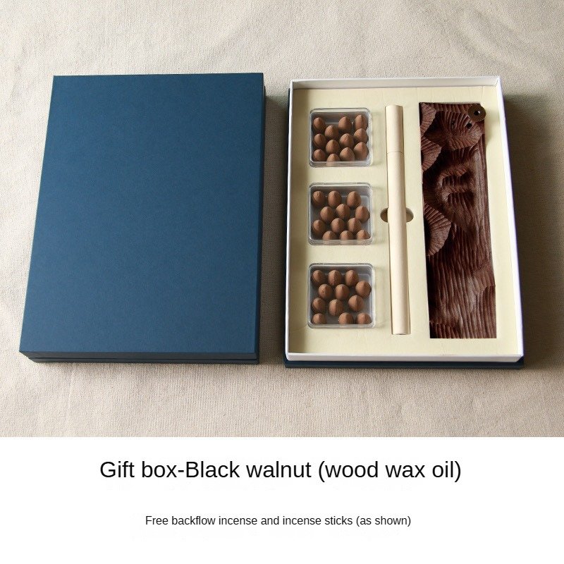 Its dual-function design supports both backflow cones and stick incense, allowing a flexible, personalized aromatherapy experience. The gentle curves and rich wood grain bring calm and elegance to any space.